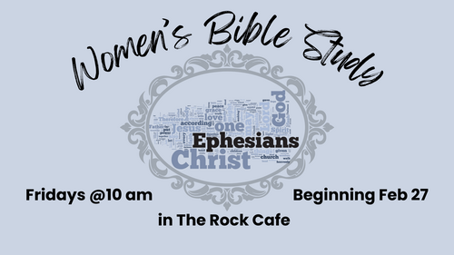The Women's Bible Study will meet in the Rock Cafe Friday Mornings @10 beginning February 27th for 6 weeks.